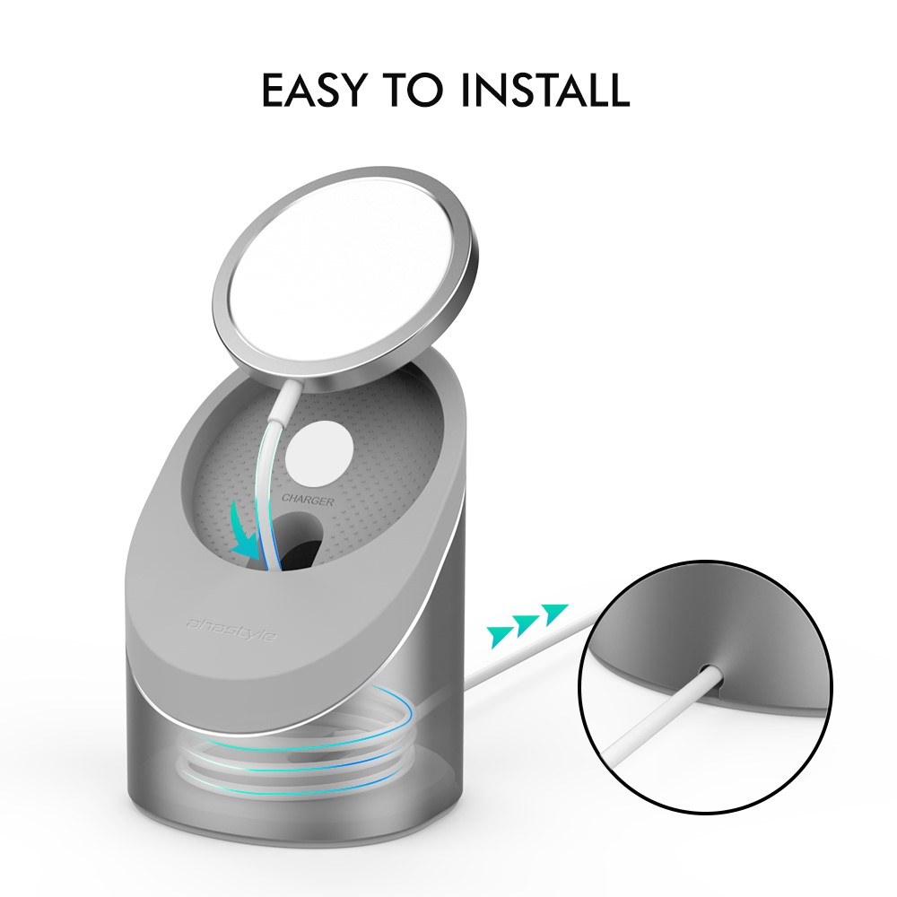 - Beschermende siliconen pads: De standaard is voorzien van siliconen pads die je MagSafe oplader en iPhone beschermen tegen krassen en verschuiven, voor een veilig gebruik.